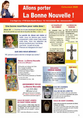 Demandez gratuitement notre nouveau catalogue 2020 par mail à : info@labonnenouvelle.fr Ecrire votre adresse postale si vous souhaitez le recevoir par la poste*. Vous pouvez aussi le télécharger ici Découvrez nos nouveautés ici Que Dieu nous bénisse ! Thierry Fourchaud La Bonne Nouvelle 8 rue Roger Levy 47180 Sainte Bazeille (France) Tél : 05.53.20.99.86 […]
